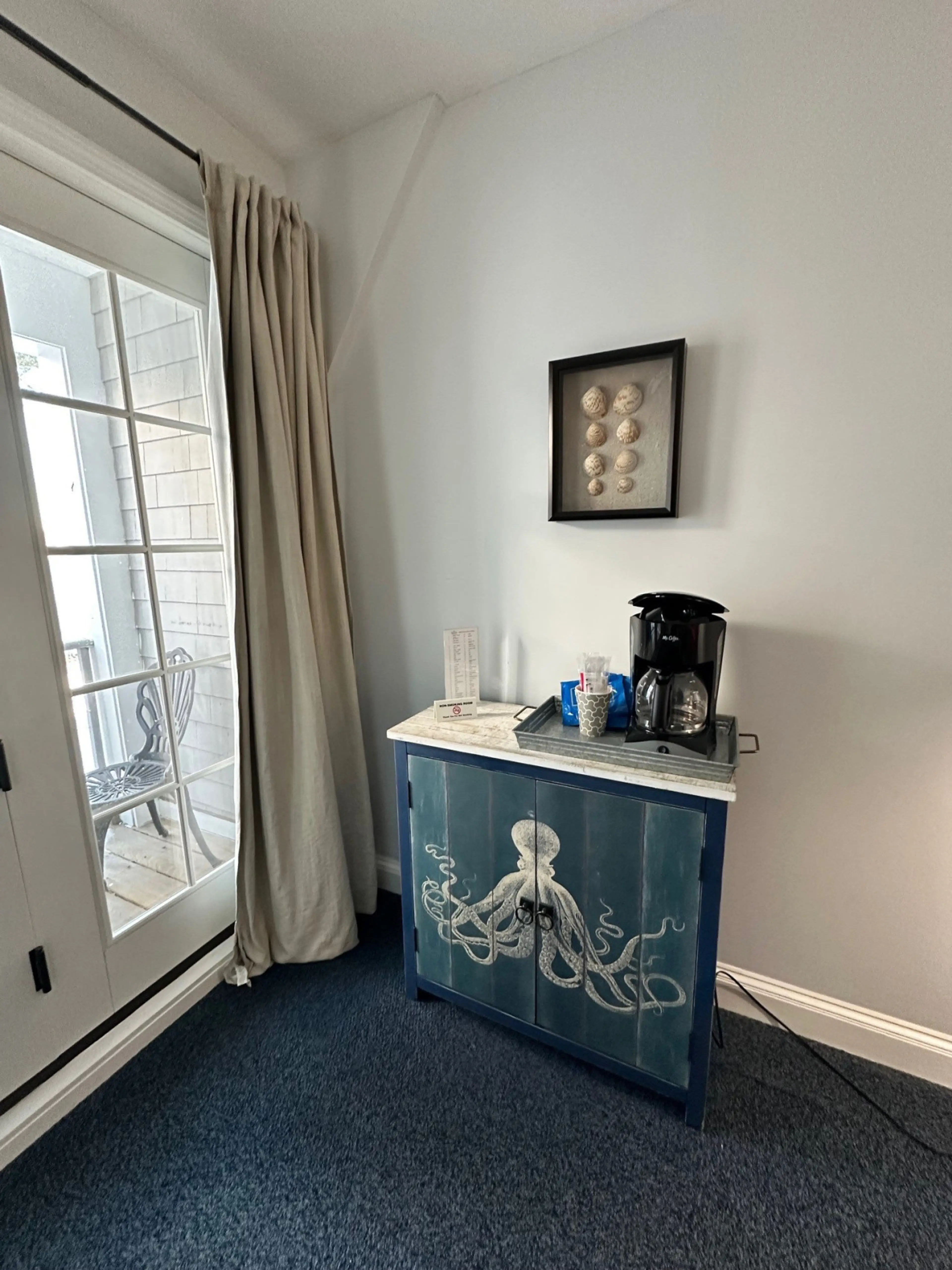 Stay in a comfortable second-floor king room located within Sheepscot Harbour Village Resort in Edgecomb, Maine. This hotel-style room offers a peaceful and convenient home base for exploring the Midcoast region, complete with an ensuite bathroom and easy climate controls. This private room feature...